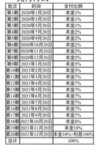 兑付方式:于5个月以内分批、全额支付原协议未回款的出借本息的100%。