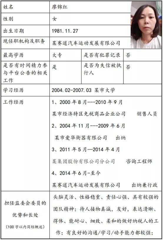 我公司监委会选举正在进行中,选举将通过深圳市互联网金融协会的深圳网贷机构退出网络投票系统进行。还没来得及的出借人可点击查看监委会选举公告以及监委会投票指引。为了让大家选举出专业、负责且有担当的监委会成员,切实维护广大出借人的利益,昨日,小随给大家展示了1-6号监委会候选人的简历,今日,小随将继续为大家展示7-12号监委会候选人简历,希望能帮助各位更好地了解30位候选人的特点,以便做出投票选择。