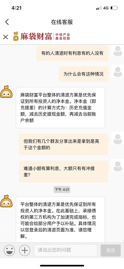 麻袋财富平台整体的清退方案是优先保证到所有投资人的净本金。净本金(即充提差)的计算方式为:历史充值金额,减去历史提现金额,再减去当前账户余额。在此基础上,承接债权的第三方机构为了加速完成指标,也可能会给部分用户予以补贴。具体情况以您登录后的清退页面为准,请您理解。