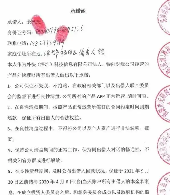 权利人及性质:余汉托,深圳外快科技信息有限公司法人,2020年因涉嫌非法吸收公众存款被福田区公安分局立案调查。