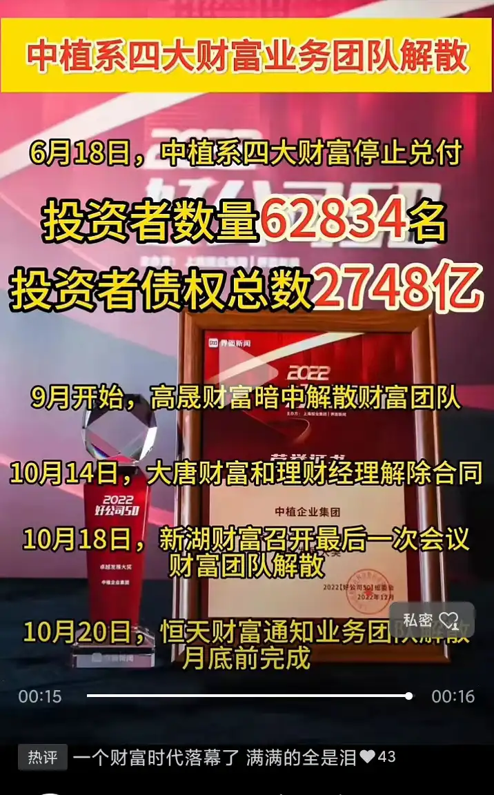 中植系四大财富业务团队解散(恒天财富大唐财富新湖财富高晟财富)#中植系#中植集团 #恒天财富 #大唐财富 #新湖财富#高晟财富#中植#定融#信托#暴雷#金交所#理财#投资#高收益#非法集资#解植坤#刘洋