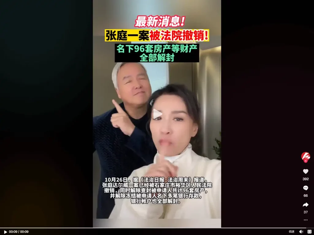 【张庭夫妇涉网络传销案已撤销 #张庭96套房产解封#】#张庭银行账户全部解封#10月26日消息,张庭(张淑琴)、林瑞阳(林吉荣)夫妇创办的品牌TST庭秘密因涉嫌传销,其旗下公司名下的96套房产曾被冻结。日前,这96套房产的查封被解除。