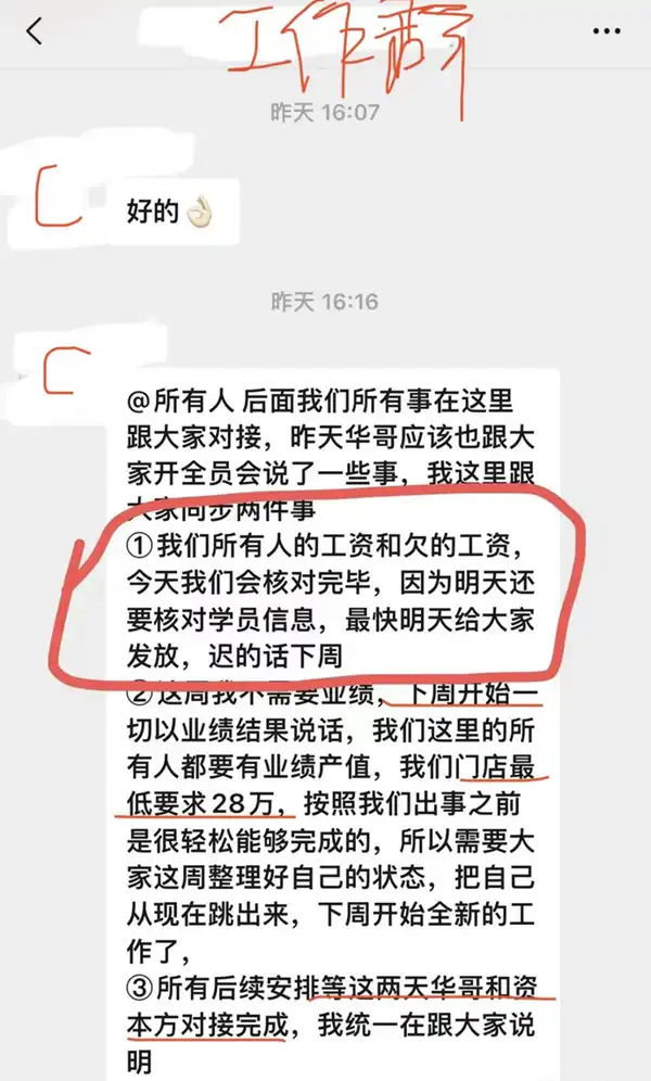 ①我们所有人的工资和欠的工资,今天我们会核对完毕,因为明天还要核对学员信息,最快明天给大家发放,迟的话下周