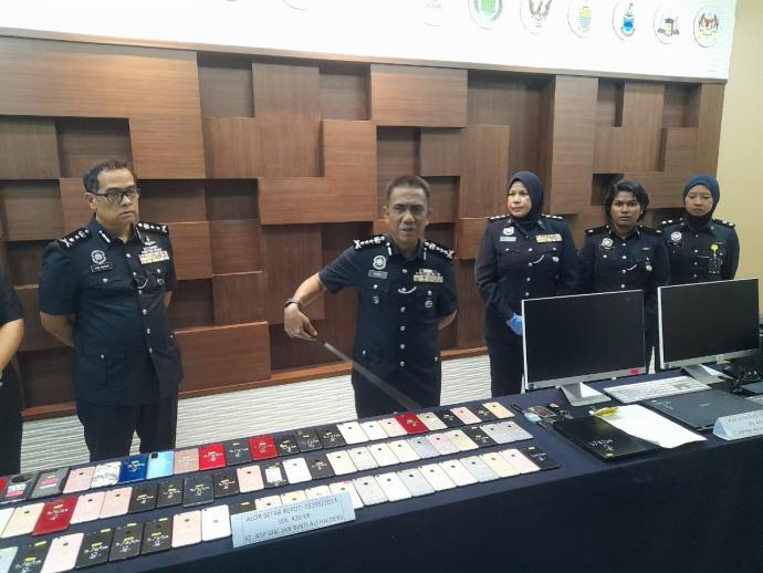 Dalam serbuan itu, polis turut merampas 19 komputer riba dan 69 telefon pintar dipercayai digunakan untuk melakukan kesalahan tersebut.