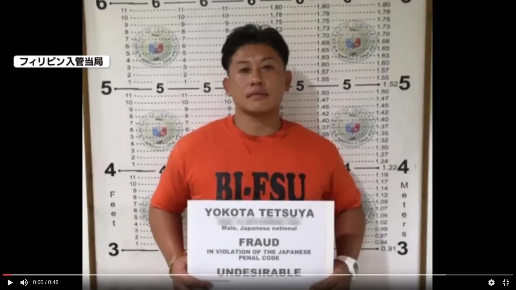 フィリピンの入管当局によりますと、拘束されたのは日本人の横田哲也容疑者(39)です。