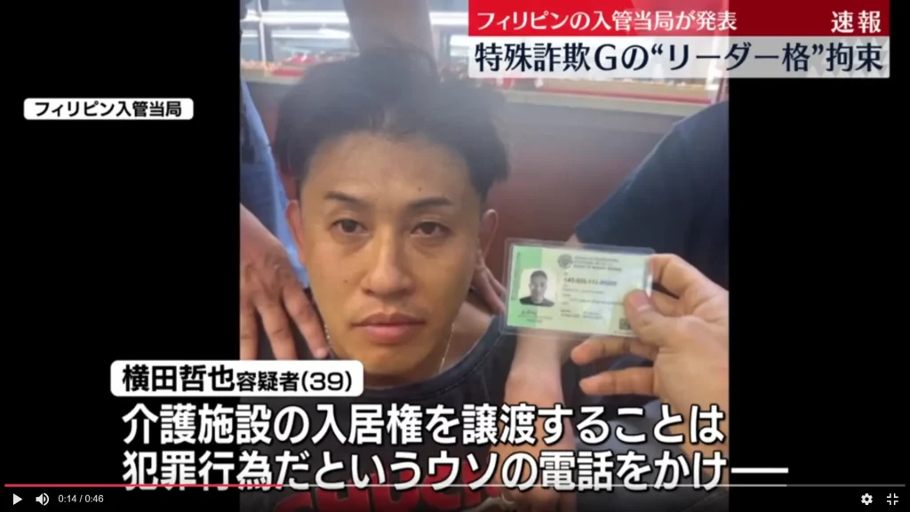 横田容疑者は介護施設の入居権を譲渡することは犯罪行為だというウソの電話をかけ、被害者から275万円をだまし取った疑いで日本で逮捕状が出されていました。