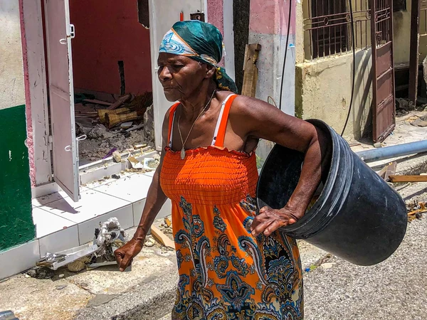 Yon dam nan swasantèn li, ki t ap mache nan direksyon Solino — yon lòt katye ki ravaje pa gang — te pote yon bokit nwa yo te ba li pandan l t ap chèche sa ki te rete a.