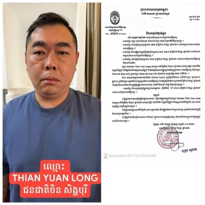 Thian Yuan Long, a Singaporean Chinese, is suspected of engaging in organised telecom fraud at a residential complex in Chroy Changvar district.