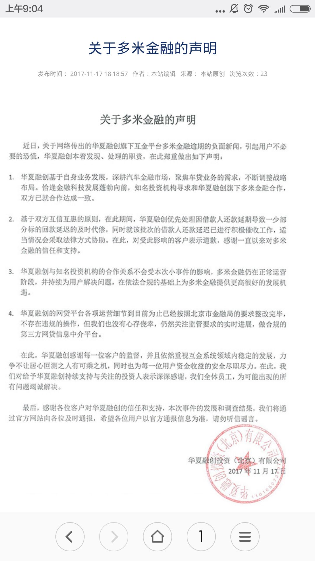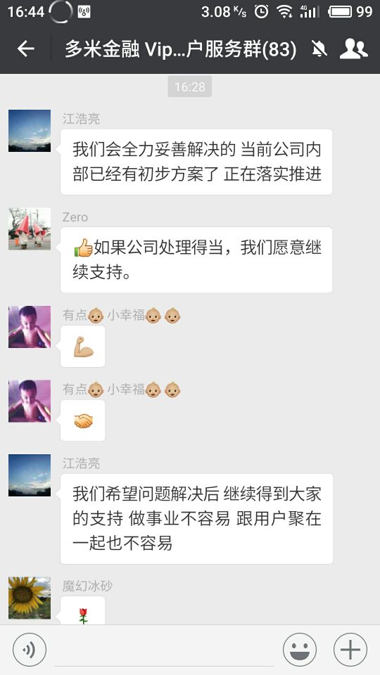 本来我是看着华夏融创的背景投的,感觉没什么事,但今天给华夏融创客服打了几个电话,态度很不好,直接甩锅和多米金融已完全脱离关系,那问题就比较严重了,明天中午准备去华夏融创总部去问问,看具体情况,大家也别等了,问题不乐观。(具体可听群文件客服回答,虽然客服说的没什么法律效力,但还是能听出很多东西的)