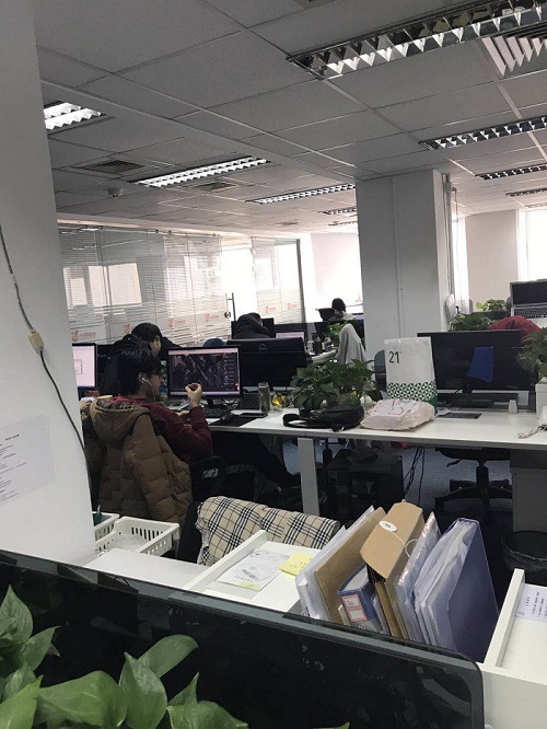我昨天也打客服了,听到背景声音还挺还挺嘈杂,觉得他们应该还在上班,心里还稍微好受点,结果昨天晚上看到他们办公室工作的情况 — 大拇哥财富 — 2017.12.14-10:05