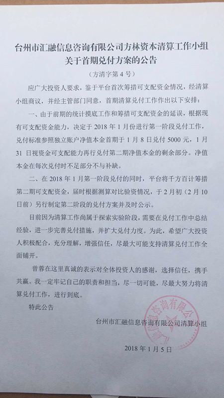 所谓的还款公告,就是老赖,法人说要分3年还清 — 方林资本 — 2018.1.19-15:35