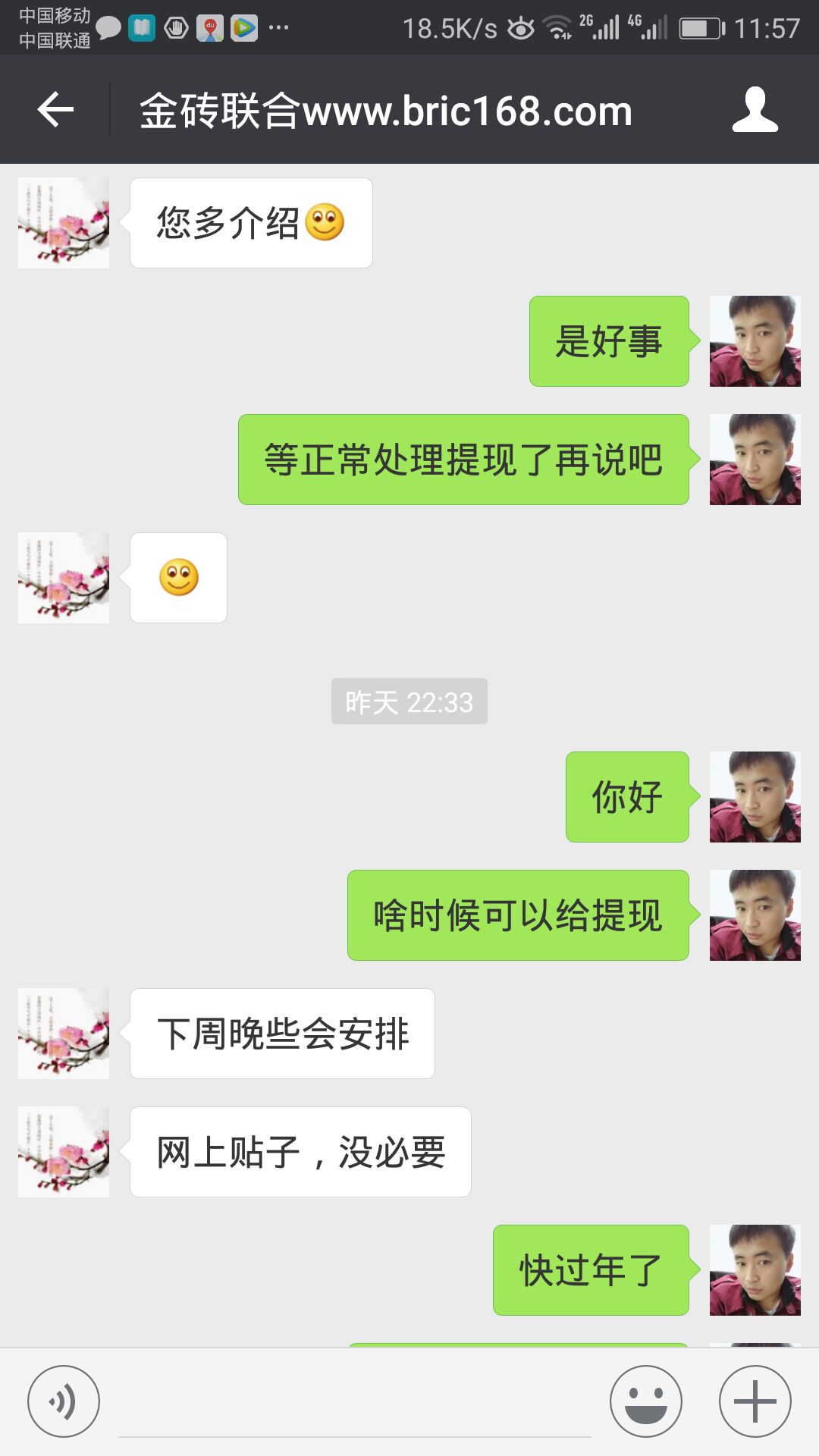 每天都说财务没下班,今天肯定到账。。每天都这样忽悠 — 金砖联合 — 2018.1.29-12:42