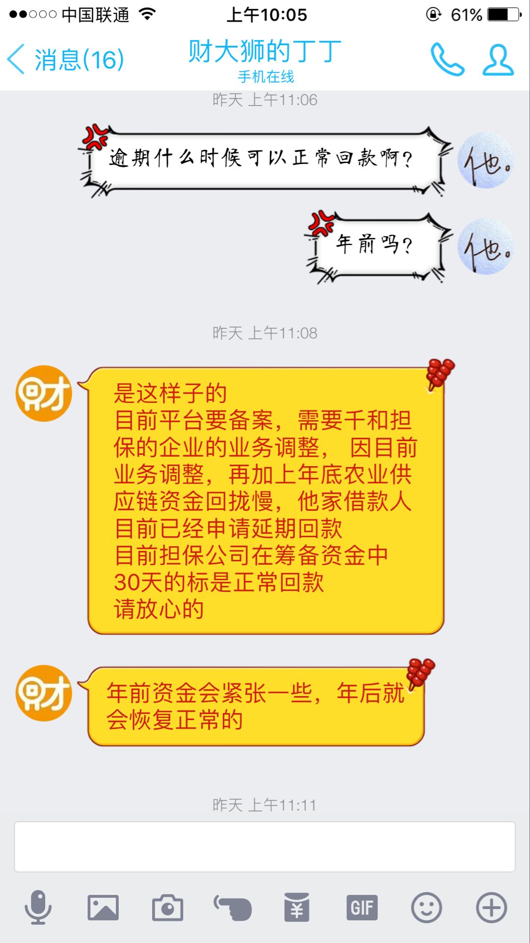 她就说你3月份或者2月底到期的,我们也不太清楚情况,你要自己留意一下