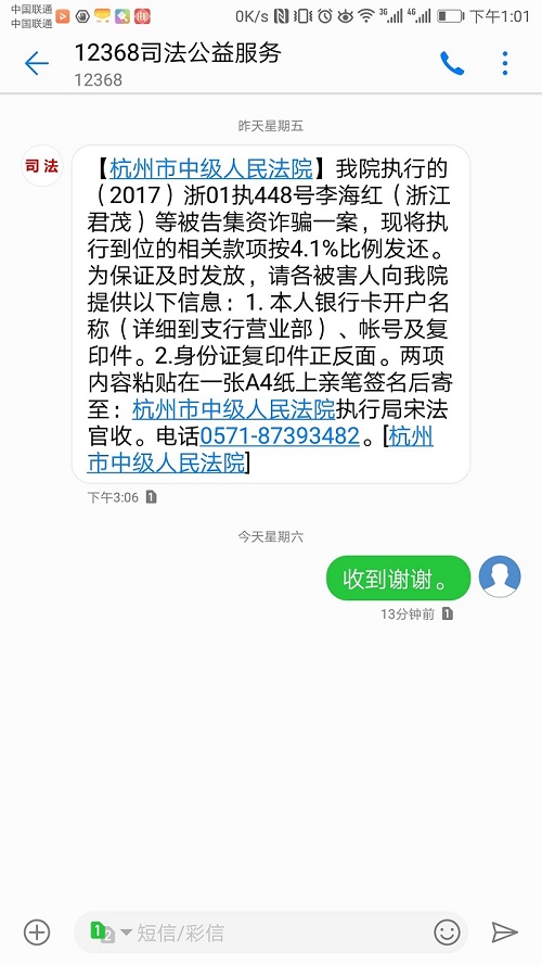 我院执行的(2017)浙01执448号李海红 — 君茂财富 — 2018.2.10-13:37