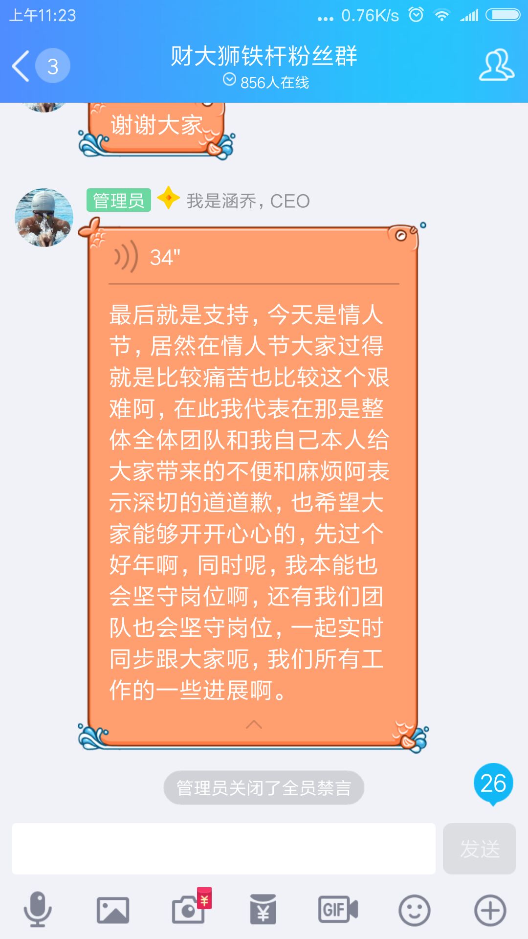 4.带领狮友团队进行宣传解释和引导工作,粉丝群的投资者多数开始能够理解和支持目前的还款方案,情绪稳定。同时对外网的一些谣言和不实的舆论进行了正确引导和说明,扫除了部分外网的不良影响。