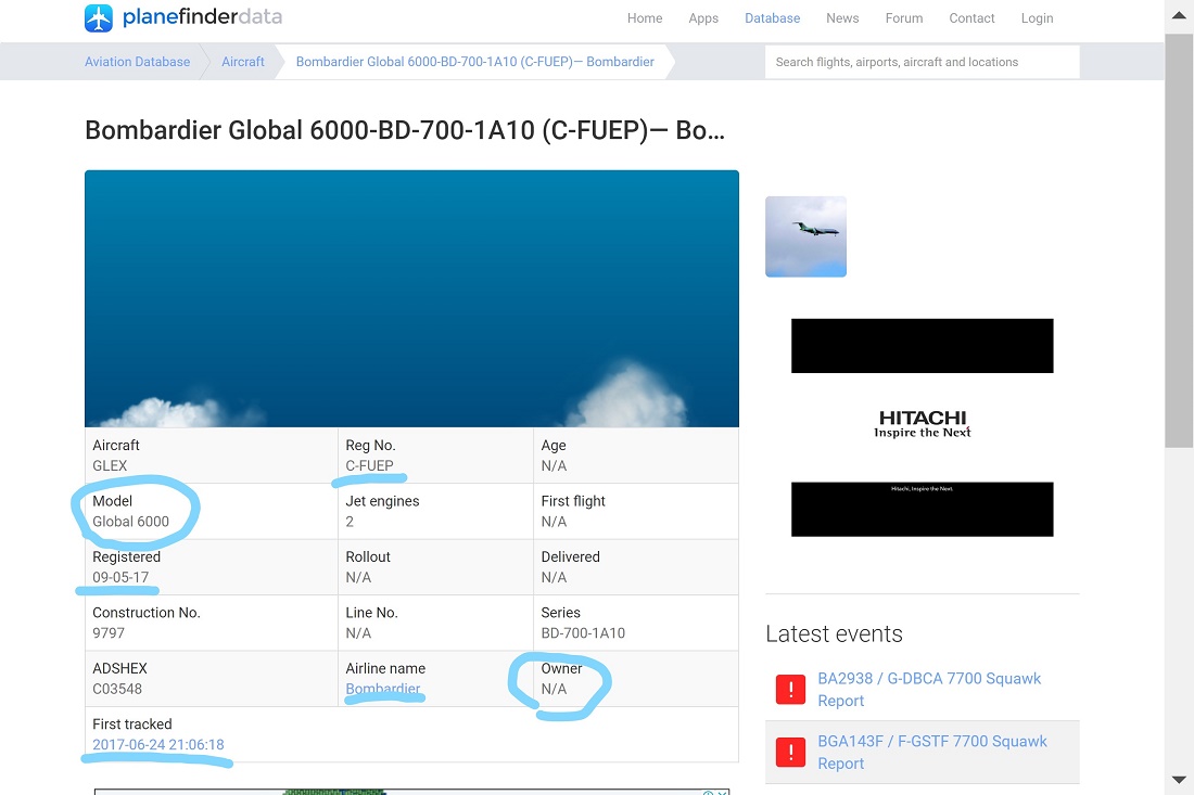 通过planefinderdata 我们可以发现。飞机是17年5月9日注册的,首飞是2017年6月24日21点。可惜拥有者这一项是未知。