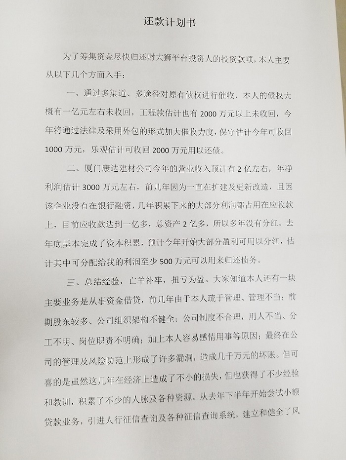 准备和大家汇报昨天和通通的结果,包括公布通通的还款计划书