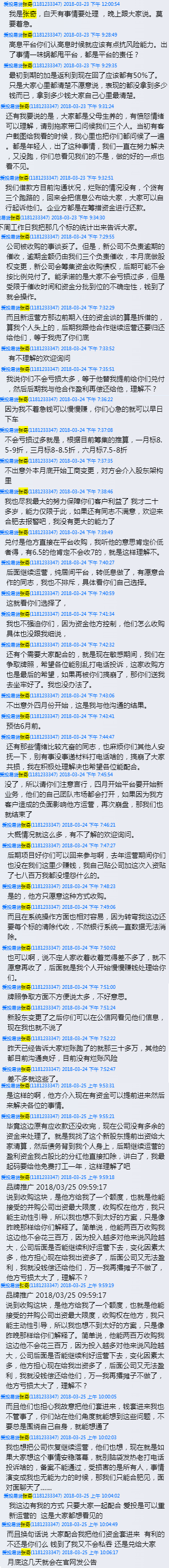 爱投已经被人买下来了,就是说,张奇不干了,把爱投一股脑卖掉了······王八蛋,这是忽悠我们,把我们卖给别人。法人一变,到时候找谁要钱去······那几个彪子,嚷嚷着搞事的,你先忍一下,别跟自己的钱过不去,也别和所有投资人过不去······爱投易贷 2018.3.25-17:45