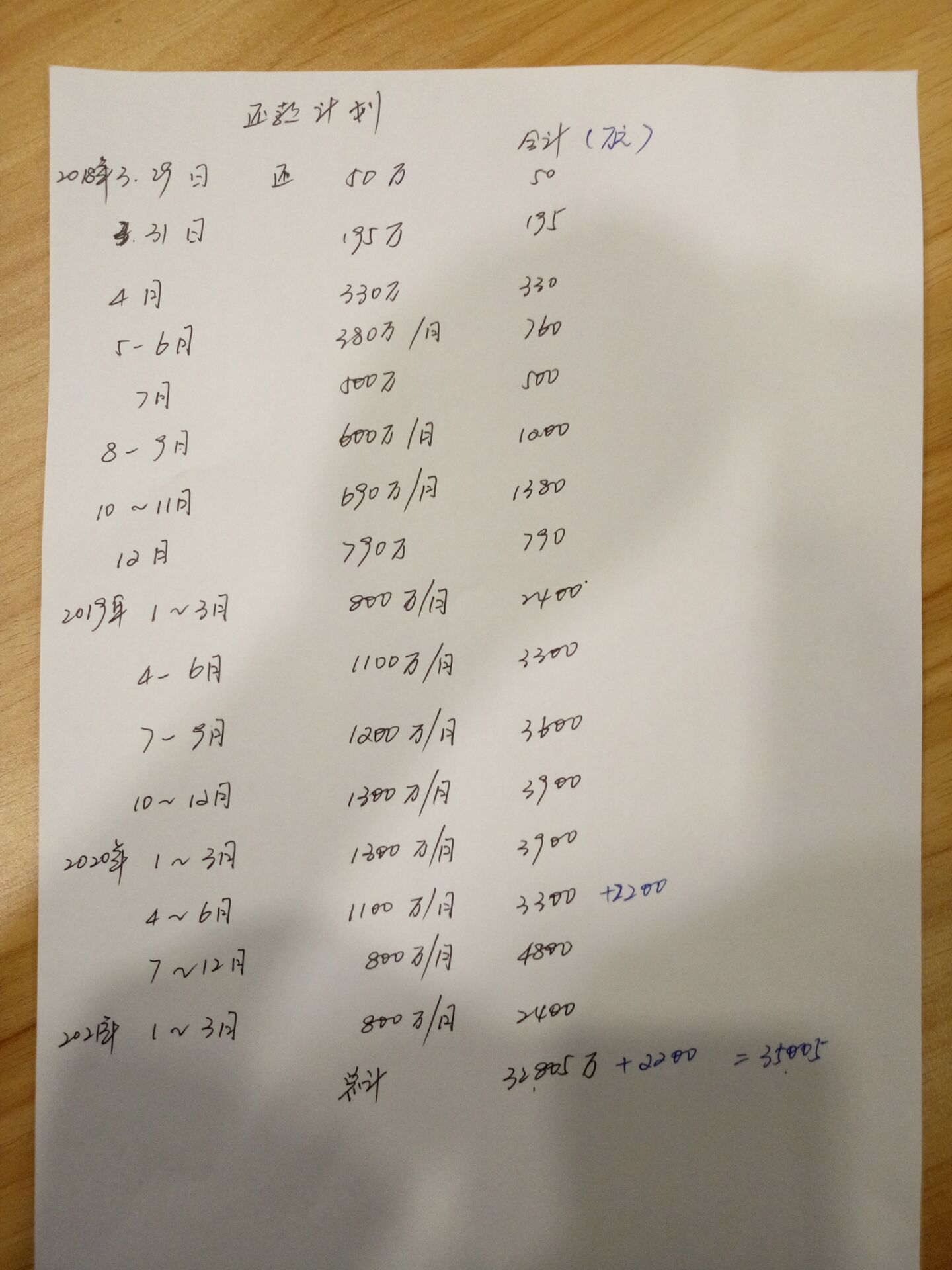 三人都有还款计划,手写这个是汇总的。