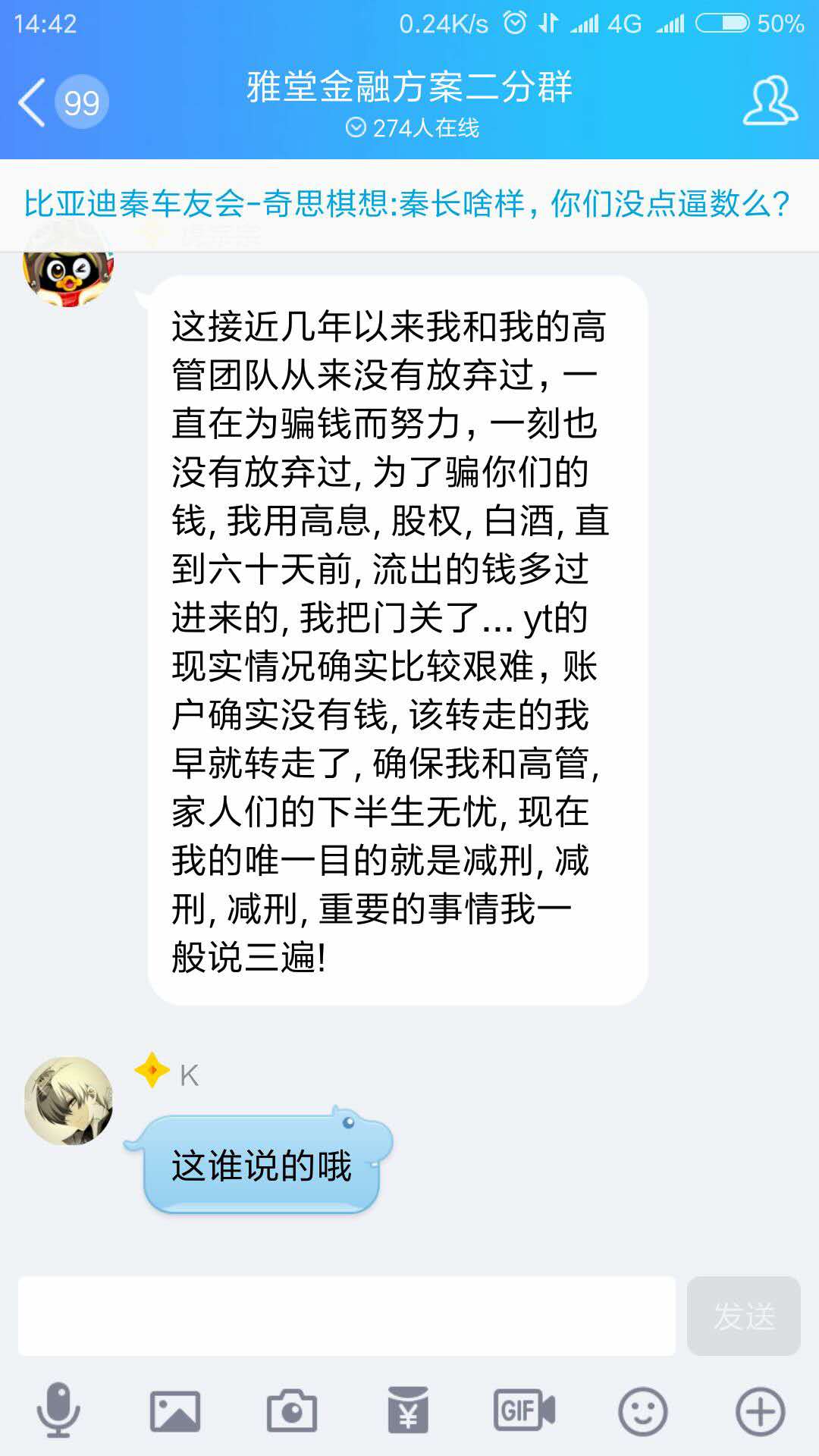 之前亿企聚财逾期的时候,我在他们群里就说了,只要出的回款方案没有按期兑付,老板没有诚意出来没对投资者,直接就是死雷,毫不犹豫的去报案