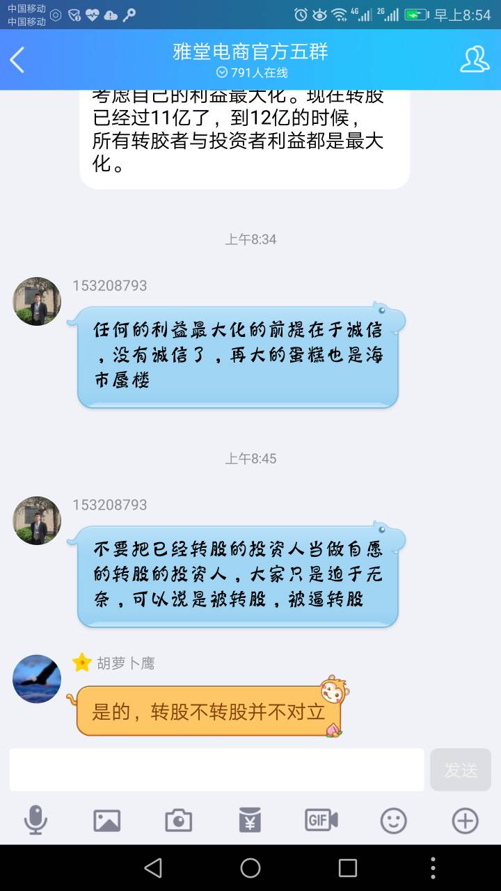 一群傻子,全都被套路了,现在你们就慢慢等他雅堂盈利还你的钱······京东多家大型机构投资做了10年才盈利······我告诉你杨定平根本就把雅堂做不下去,他根本就不是干大事这块料······他搞投资公司没做下去,卖家具没做下去,开小超又被他搞垮······老杨一直不肯说总投资人金额是多少······去现场谈判过的人就知道杨定平是有多垃圾了,处处想着自己的利益,根本没想过大家······杨定平确实只顾及自己利益,一点都不松口,现场谈判录音都听过了······现在转股成了,前委应该问问老杨二期菜钱该发了······雅堂金融(资金盘) 2018.3.31-9:36