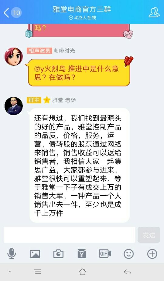 等傻了,雷疯了,我的辛苦人民币,就这样成灰了······老杨一句话,解读为机构没了、小超没了、直营店没了······我们信他,就是个笑话,他让我们救他就是个天大的笑话······你能干过哪个?能干过淘宝还是京东······还要替雅堂干活,自己给自己还债,搞笑······在一次路演会上,有人问老杨:你会不会跑路?老杨动情地说:除非我在地球上消失了······雅堂金融(资金盘) 2018.4.1-15:47