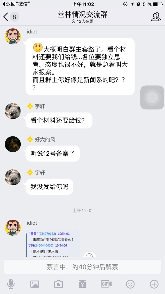 然后我们说他骗人,就被禁言了