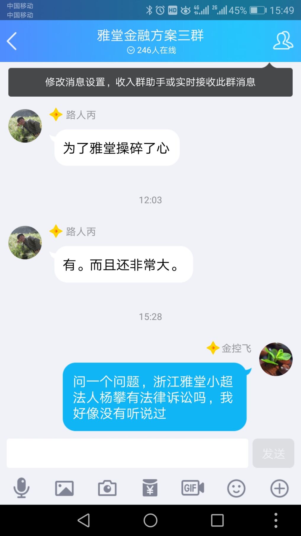 你跟一个欠债35亿人赌未来,手里鸡毛资源也没的人,赌什么······杨攀就是浙江雅堂小超法人,年会都登台了,还说在马爸爸的地盘混······雅堂金融(资金盘) 2018.4.17-19:06