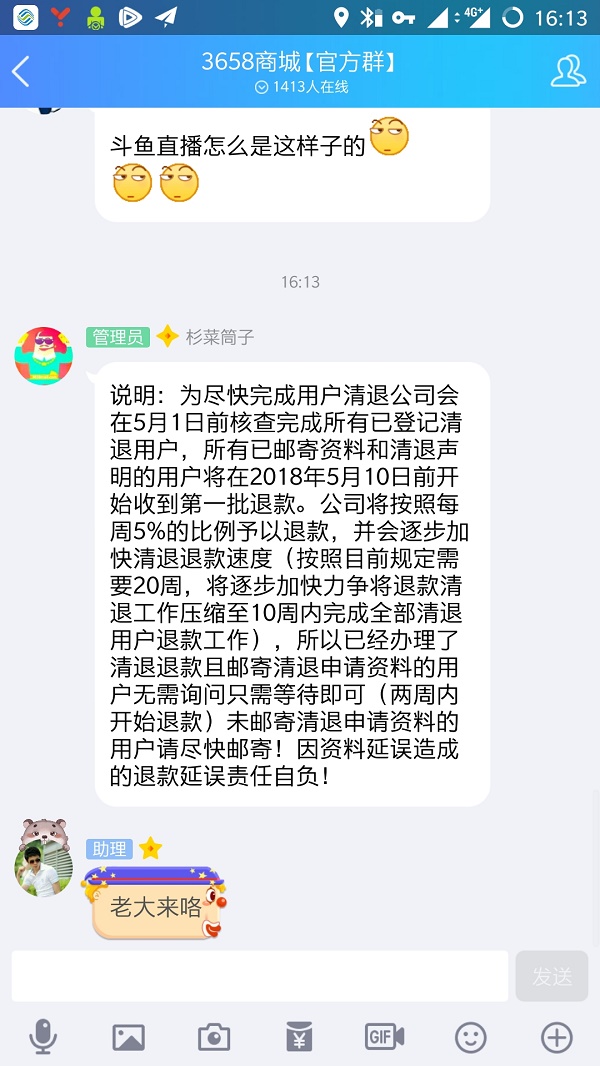 公告都不算数,聊天记录纯属呲牛逼······3658商城(资金盘) 2018.4.21-17:49