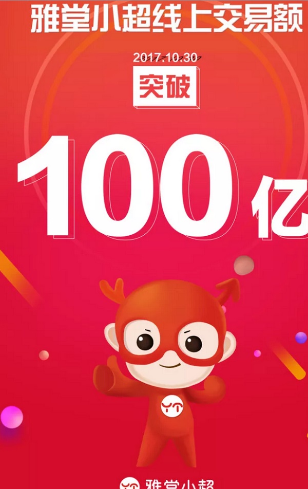 2017年10月31日,雅堂小超线上交易额突破100亿元。