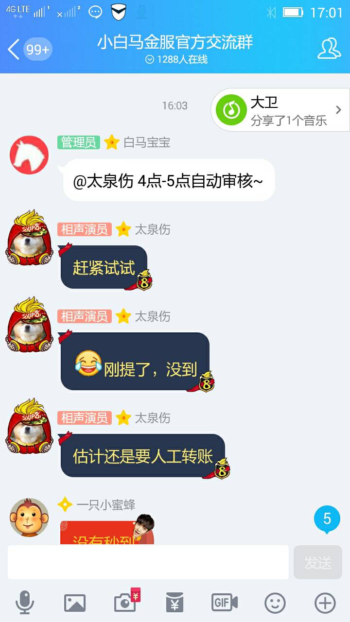 小白马的红包疯狂发,上车的应该不少······去年预警到现在了,我就看到投资群里人越来越多,36天标稍微不注意就没了,还预警,赶紧的,让人家不要和我抢36天标,shit······不明事因的二货好事者不少,我忍不住要破口大骂了······我想对好事的黑嘴说一句:你丫的真TM是个250!没脑子是吗?能了解清楚情况再来黑不?就你这水平当黑嘴,恐怕也没有平台愿意给你支付封口费!傻叉一个!而且既然你敢黑,肯定也在小白马没投资了,赶紧从我官群滚出去!小白马不欢迎你······我就一个看戏的,反正在特殊时间点,全号梭完了小白马,再投我是肯定没胆子的······小白马金服 2018.5.25-7:00