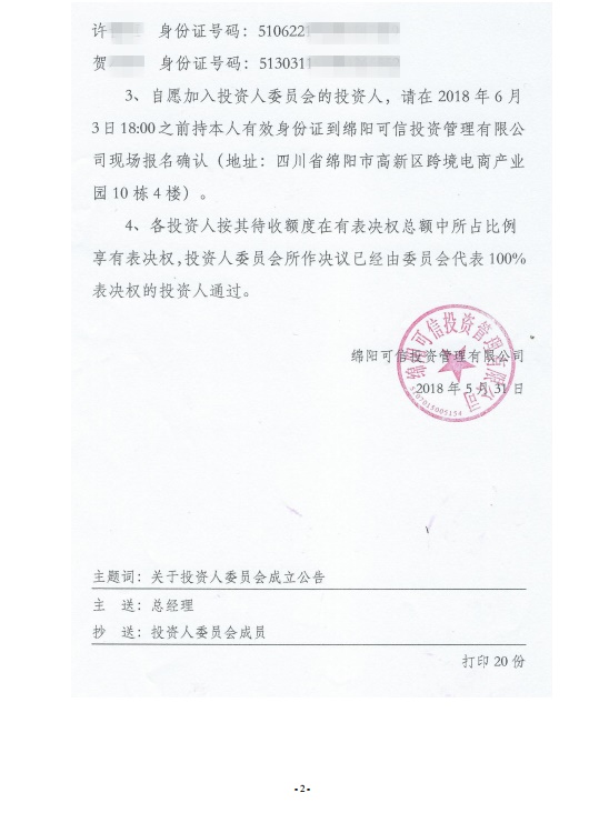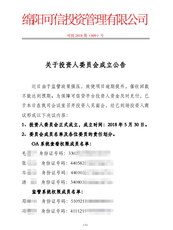 投资人委员会提议:建议暂停平台业务缩减开支,先行回款计划。具体的回款提现计划将在2018年5月31日18:00前公布。