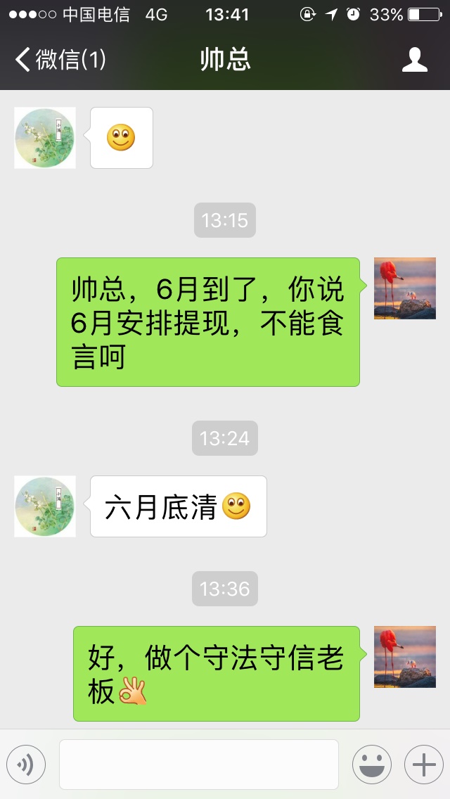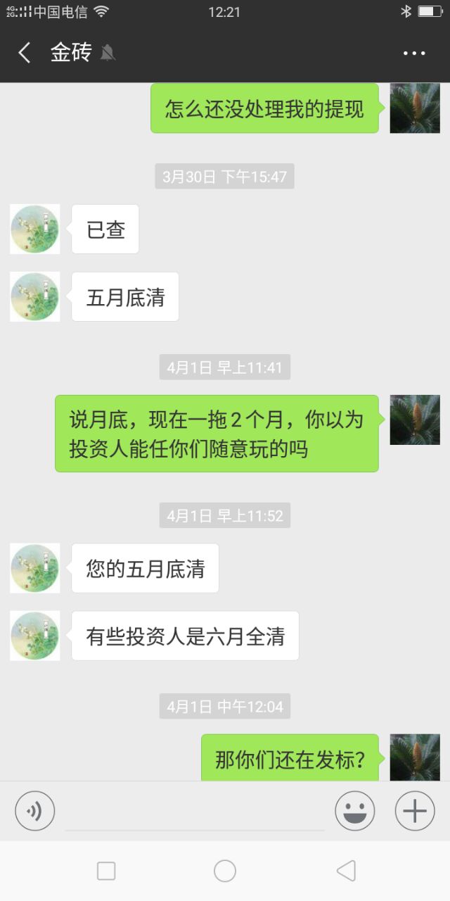 他现在只在兑付小额的安抚人心。楼上那位,聊天记录说明了,5月底清。现在6月了