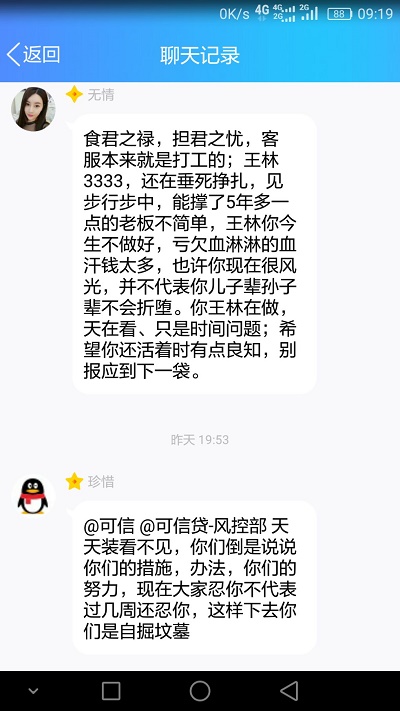 王林昨天在另一个群嫌投资人言语攻击,说的很委屈