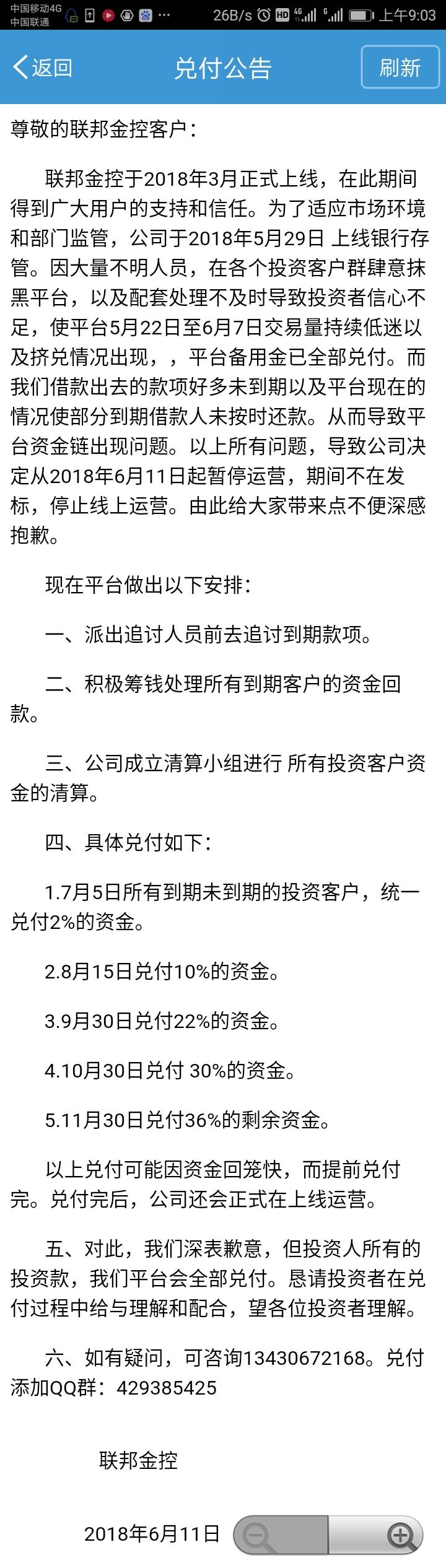 吓死了这一天天的。我刚看了联邦金服。是发通告了。