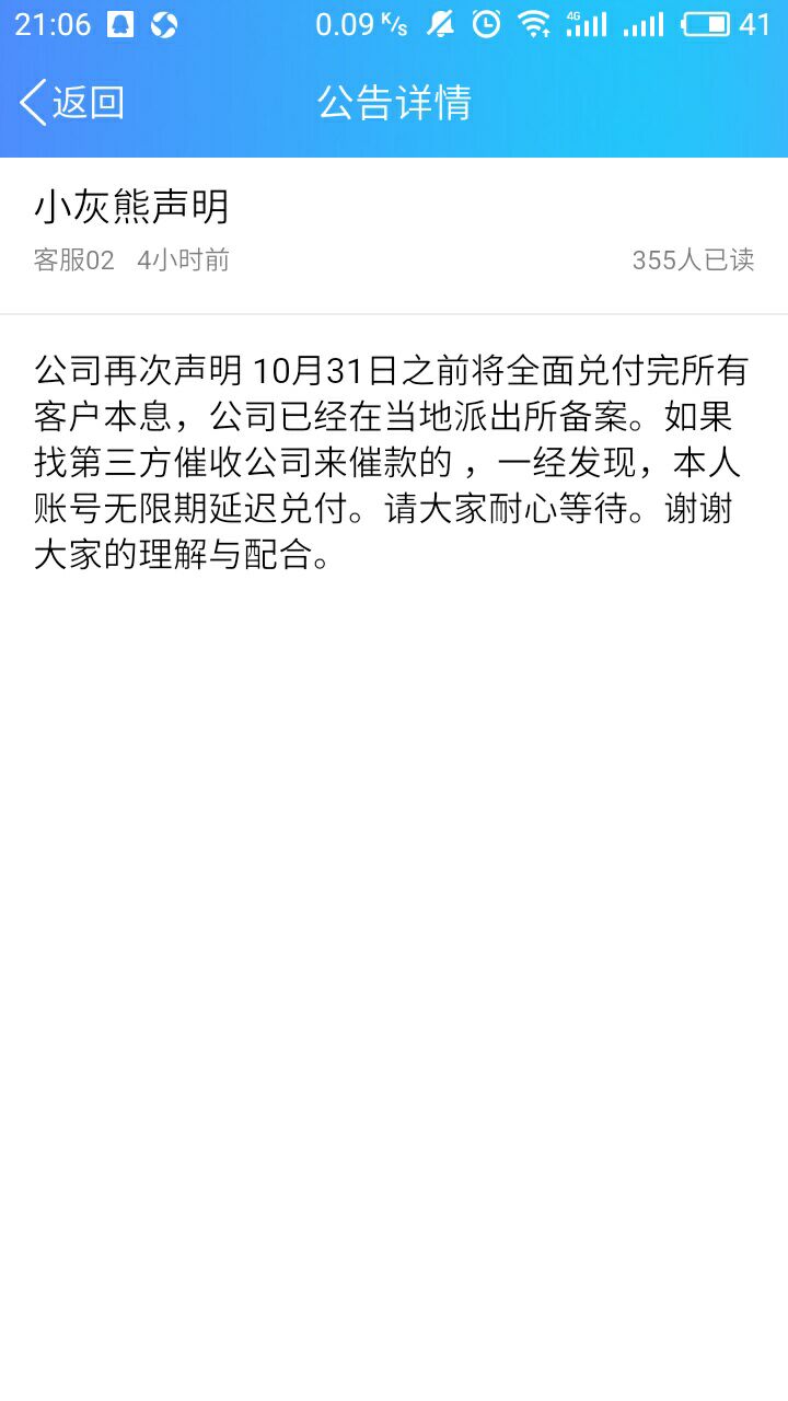 小灰熊金服 2018.6.12-21:08······如果找第三方催收公司来催款的,一经发现,本人账号无限期延迟支付