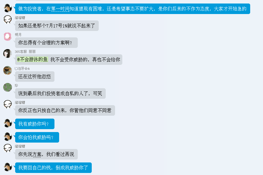 是不是跟客服丽丽沟通,给他点空间 让他们出一个我们认可的有诚意的兑付方案,不要再逼全额兑付了不可能的