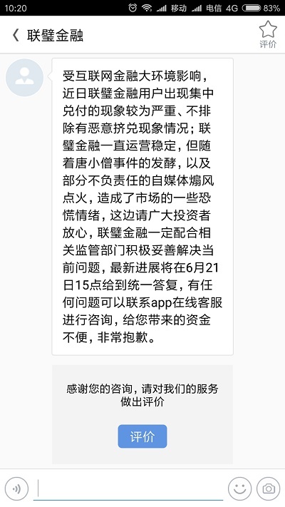 联璧金融 2018.6.21-17:02······受互联网金融大环境影响,近日联璧金融用户出现集中兑付的现象较为严重······联璧就是活活被挤兑死的