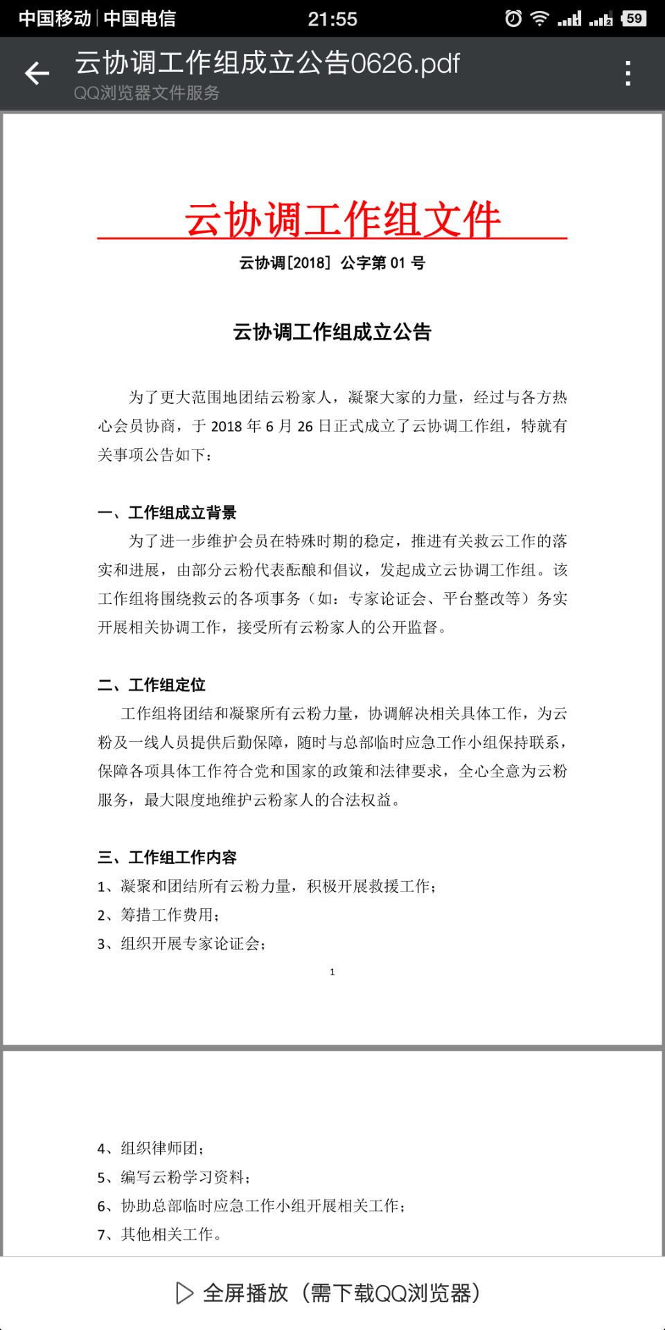云联商城(云联惠资金盘) 2018.6.26-22:11······云协调工作组······又来一波骗钱的,榨干云粉最后一滴血,文件通篇未提云联惠3个字······万一发完视频就被抓了就搞笑了