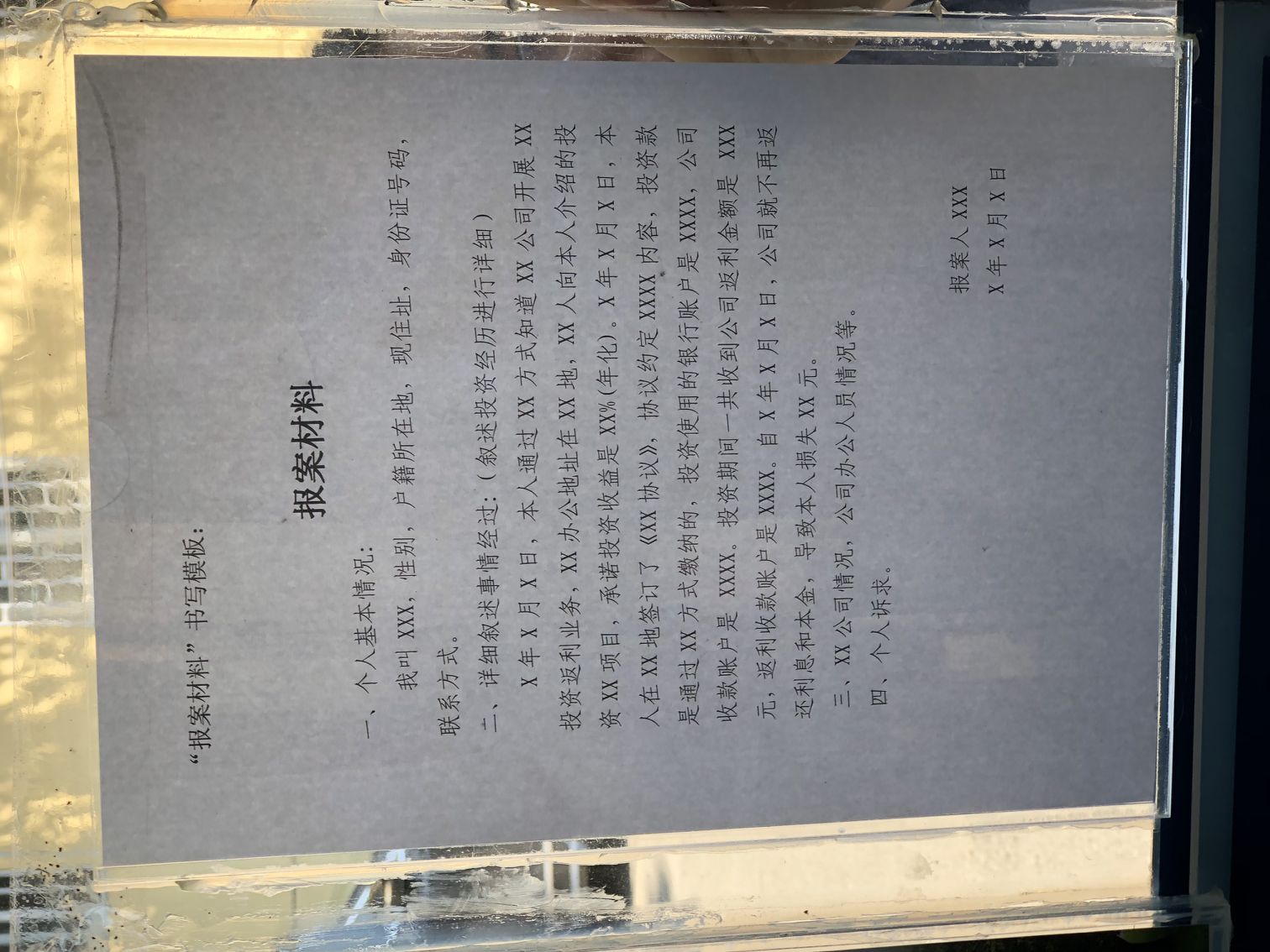 花果金融 2018.6.30-11:06······报案应准备的材料······报案材料书写模板
