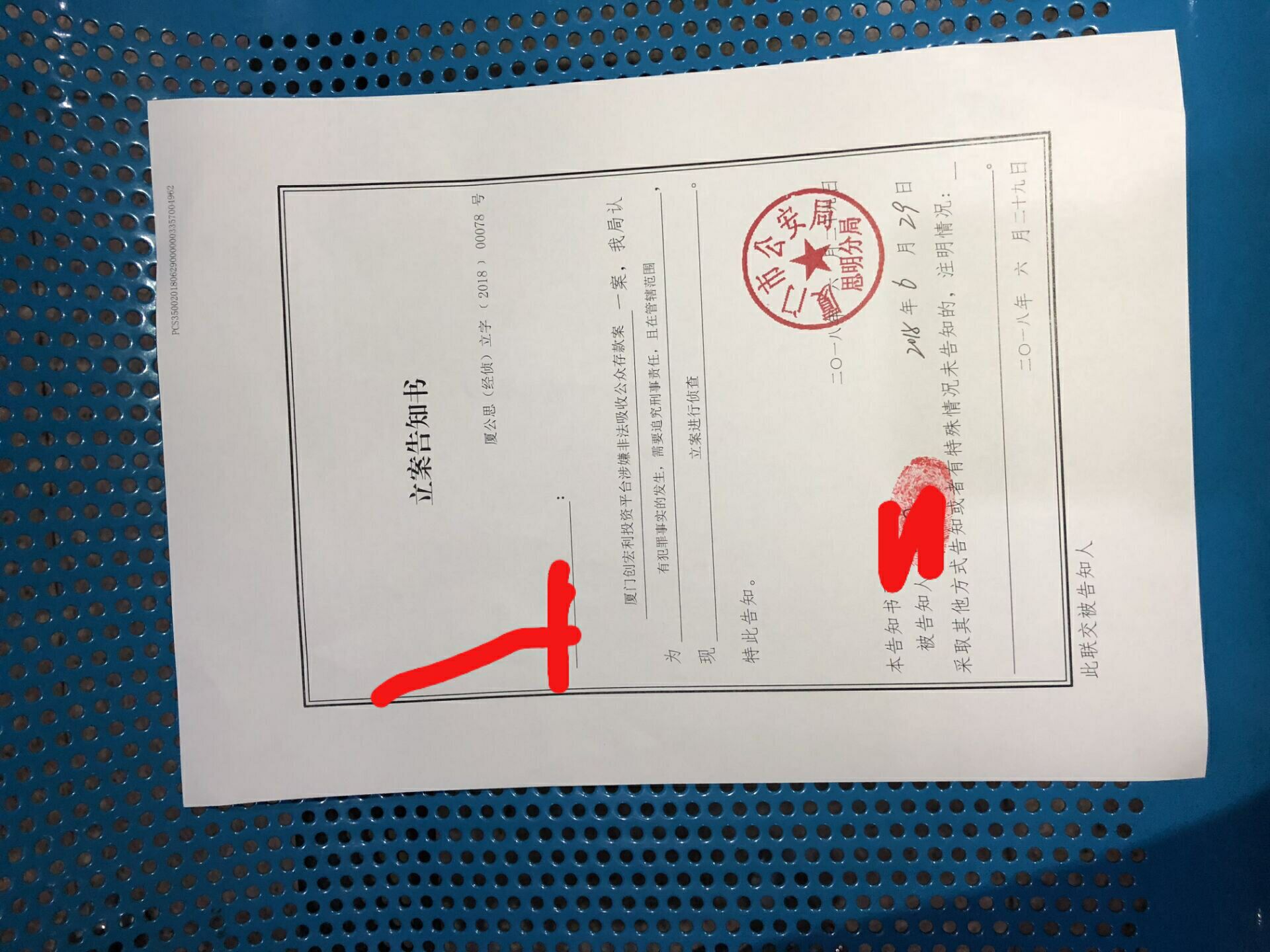 创宏利 2018.6.30-13:21······厦门创宏利投资平台涉嫌非法吸收公众存款案立案告知书