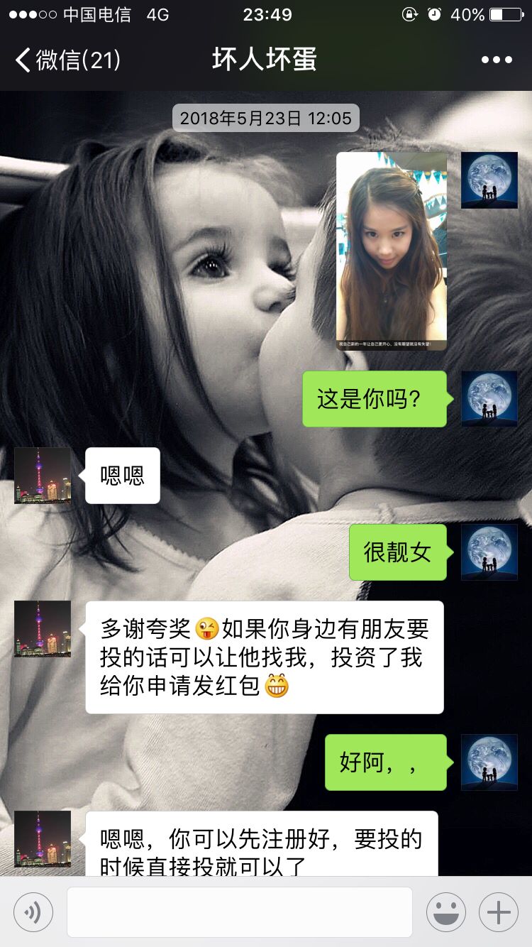 沪宁金服 2018.6.29-24:00······大家一个目的,一个终点,不要忘了自己的初衷······这是啥 突然爆照······我在沪宁金服投资后聊上的,后来跟他聊天过程中(跟他学投资其他平台不会爆雷和平台出事可提前提现)不要相信他,他是骗子······然后她就突然跑路了把你拉黑了吗······我也有就是她让我投的,拉黑我了······人生不如意十有八九,节哀吧,先改个群名,然后加入我们报警大部队吧