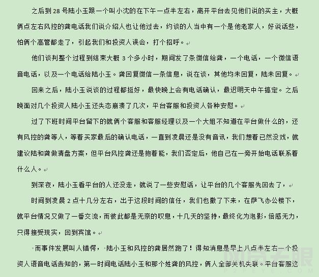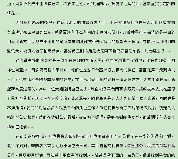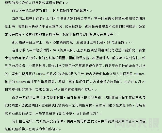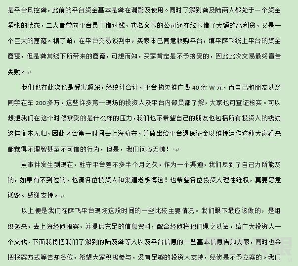 萨飞资本 2018.7.1-16:38······众怒下的投资者最恨的就是玩失踪的老板。这很明显就是炸片······以上便是我们在萨飞平台现场这段时间的一些比较主要情况