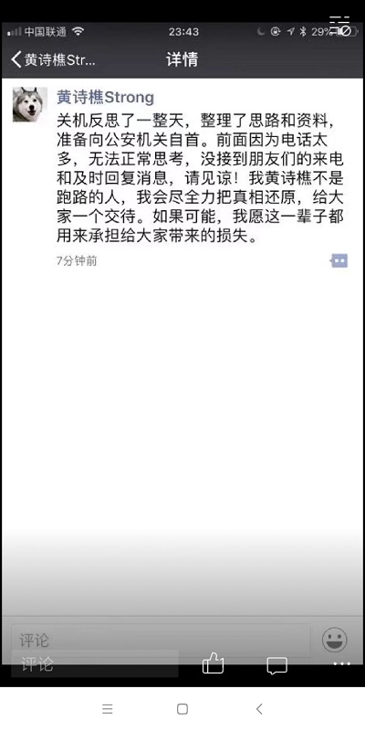 投之家 2018.7.15-0:09……关机反思了一整天,整理了思路和资料,准备向公安机关自首……我会尽全力把真相还原
