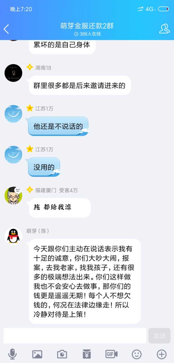 萌芽金服 2018.7.15-22:39……不会跑路的,可对天发誓……钱会回来的……要让我碰到这个狗日的,几巴掌扇死他……出来讲句话就代表十足的诚意?他以为他是哪根葱?美国总统……跟这种无赖说没用的……一个月前公告写的怎么兑付是有人拿刀逼你了吗?公告算个屁啊,你算个屁啊,公告说改就改,当过家家呢……你在宁波哪里?你要是你妈生的,敢和我宁波碰面吗?别做孙子,缩头乌龟似的