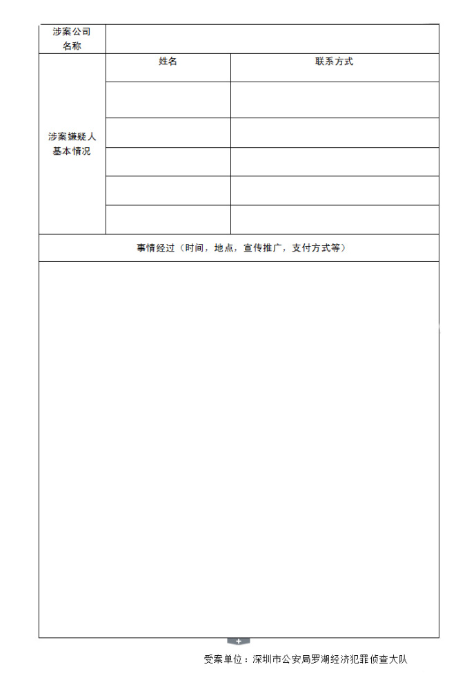 2、亲临深圳市公安局罗湖分局黄贝派出所或深圳市公安局罗湖分局经侦大队(地址:广东省深圳市罗湖区湖贝路2000号)递交材料。