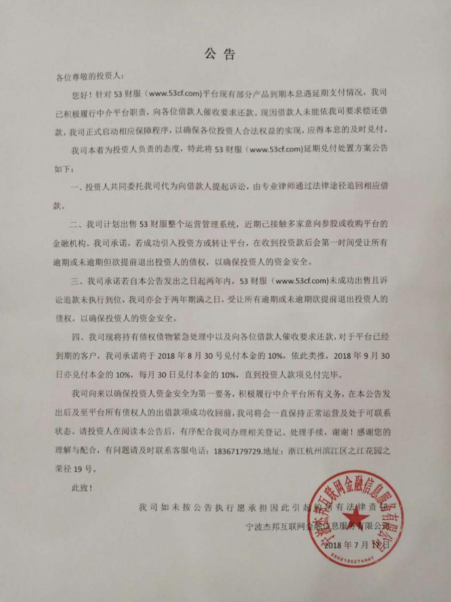 53财服 2018.7.18-14:47······53财服延期兑付处置方案