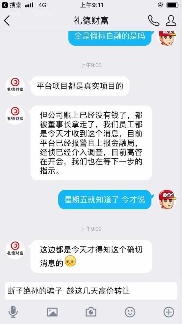 礼德财富 2018.7.23-9:58……平台项目都是真实的,但公司账上已经没有钱了