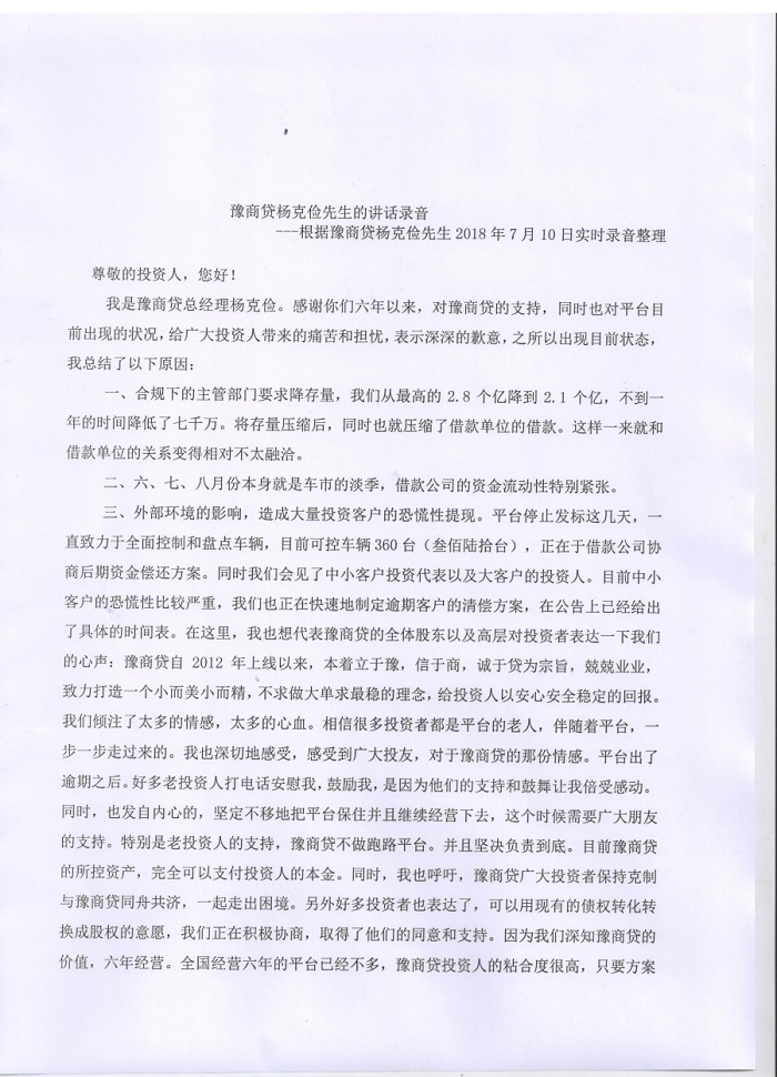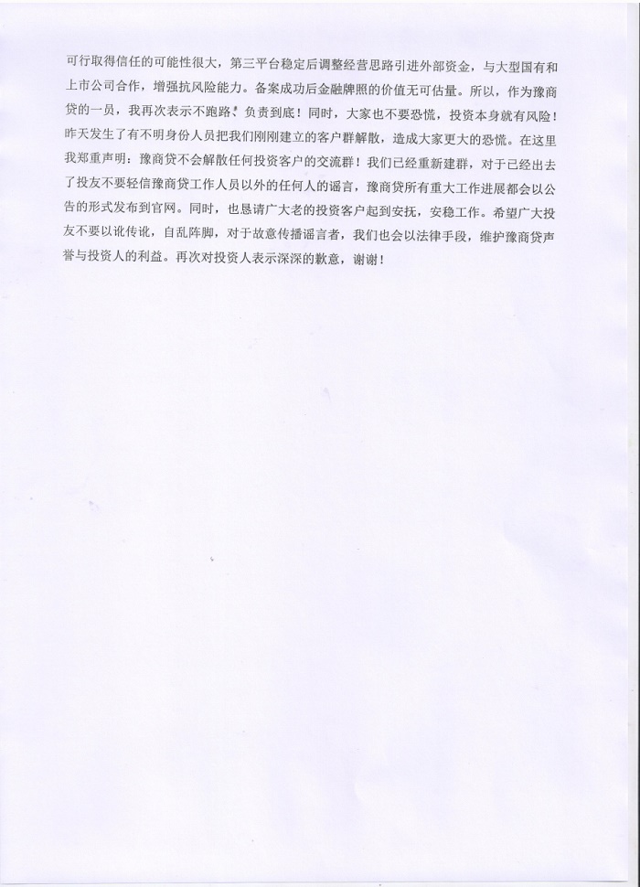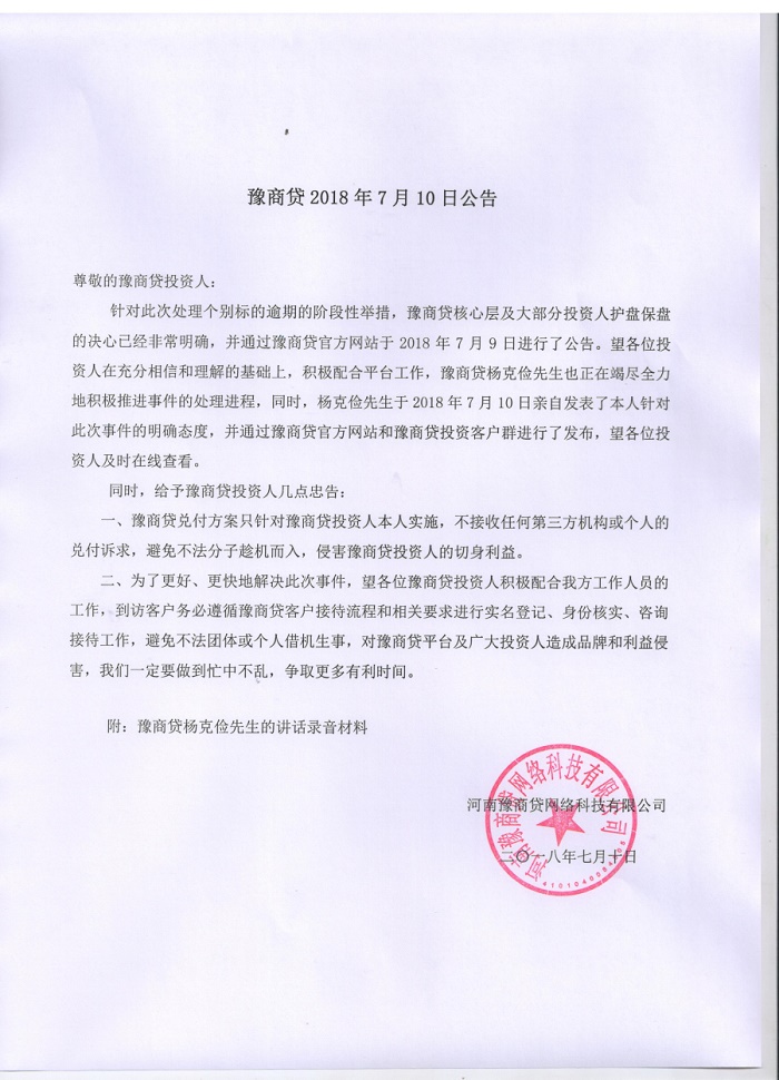 豫商贷 2018.7.10-10:11……豫商贷2018年7月10日公告……豫商贷护盘保盘的决心