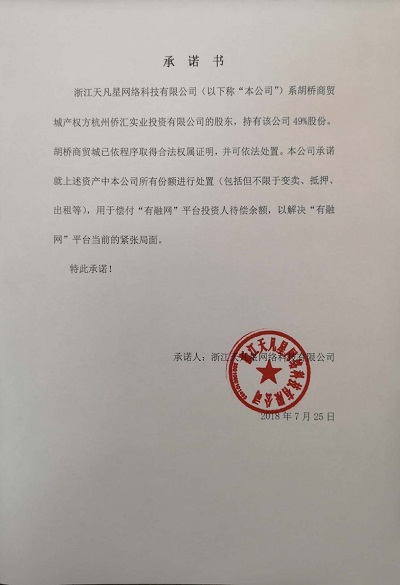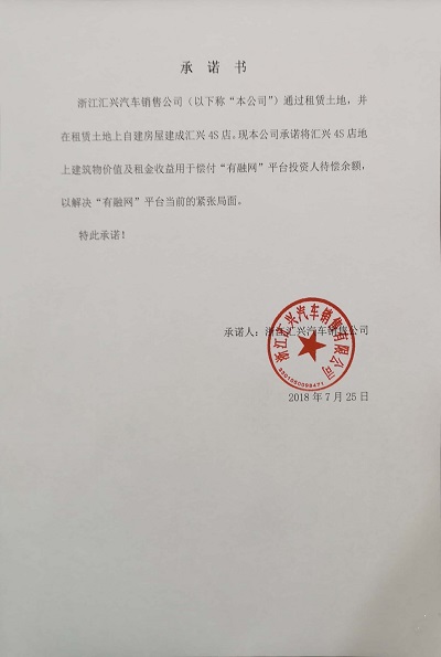 有融网 2018.7.26-10:22……壮士断腕,凤凰涅槃……“有融网”平台自2014年11月份上线,风风雨雨历经四年。近期全国各地P2P平台接连爆雷,引发挤兑,波及“有融网”平台。“有融网”作为一个有责任、有担当的企业,正在尽最大的努力应对当前的紧张局势……公司将优质资产通过债转股的方式转让给投资人。现拟将汇兴4S店资产进行债转股试点,同时,后续将会梳理其他优质资产通过债转股的方式转让给投资人……2018年的P2P风波对“有融网”及融粉来说是挑战,更是机遇。“有融网”将不负众望,渡劫涅槃